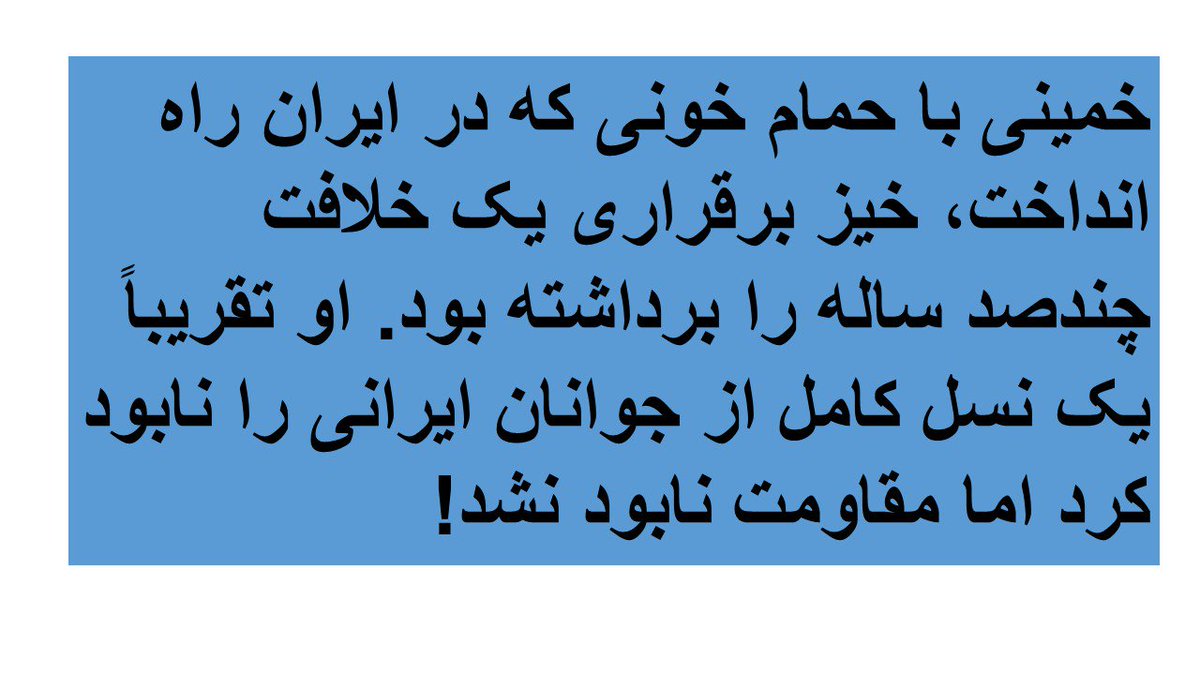 خمینی با حمام خونی که در ایران راه انداخت، خیز برقراری یک خلافت چندصد ساله را برداشته بود. او تقریباً یک نسل کامل از جوانان ایرانی را نابود کرد اما مقاومت نابود نشد!